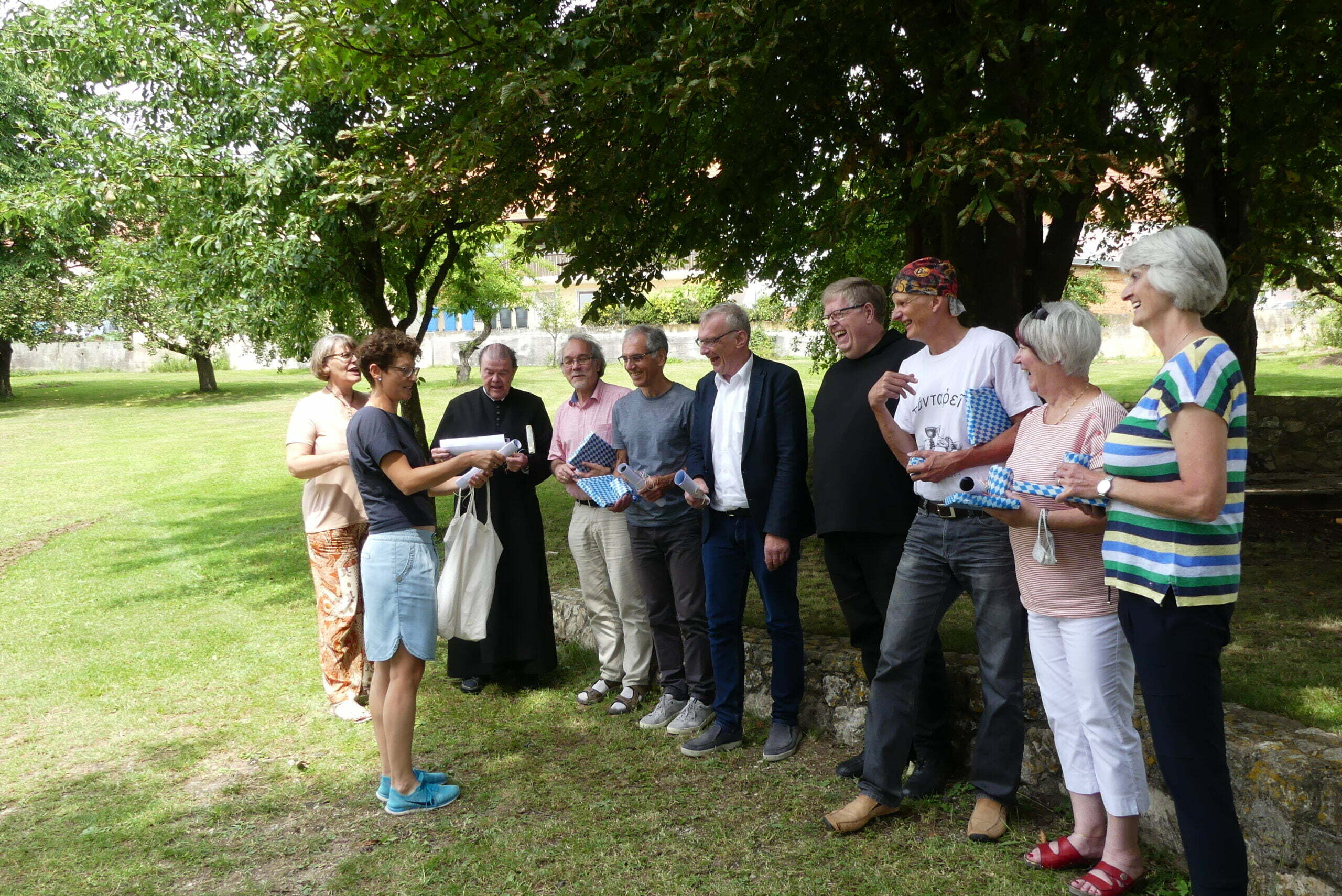 Von links: Schulleiterin Carola Reim, Altabt Gregor Zippel, Klaus Hagner, Franz Stingl, Dr. Josef Müller, Frater Franz Neuhausen, Michael Schindler, Angelika Hofmann und Hermine Paßler.