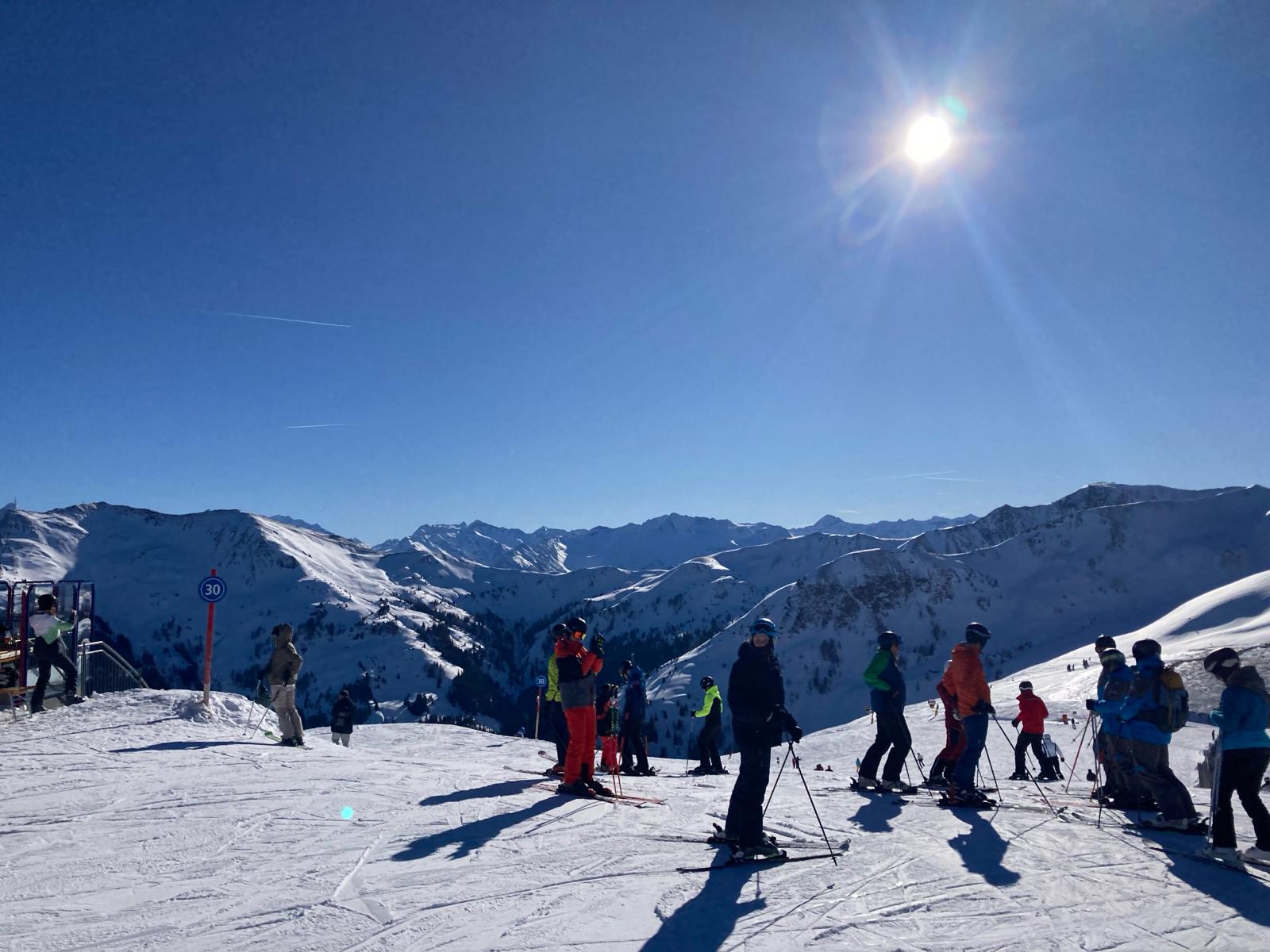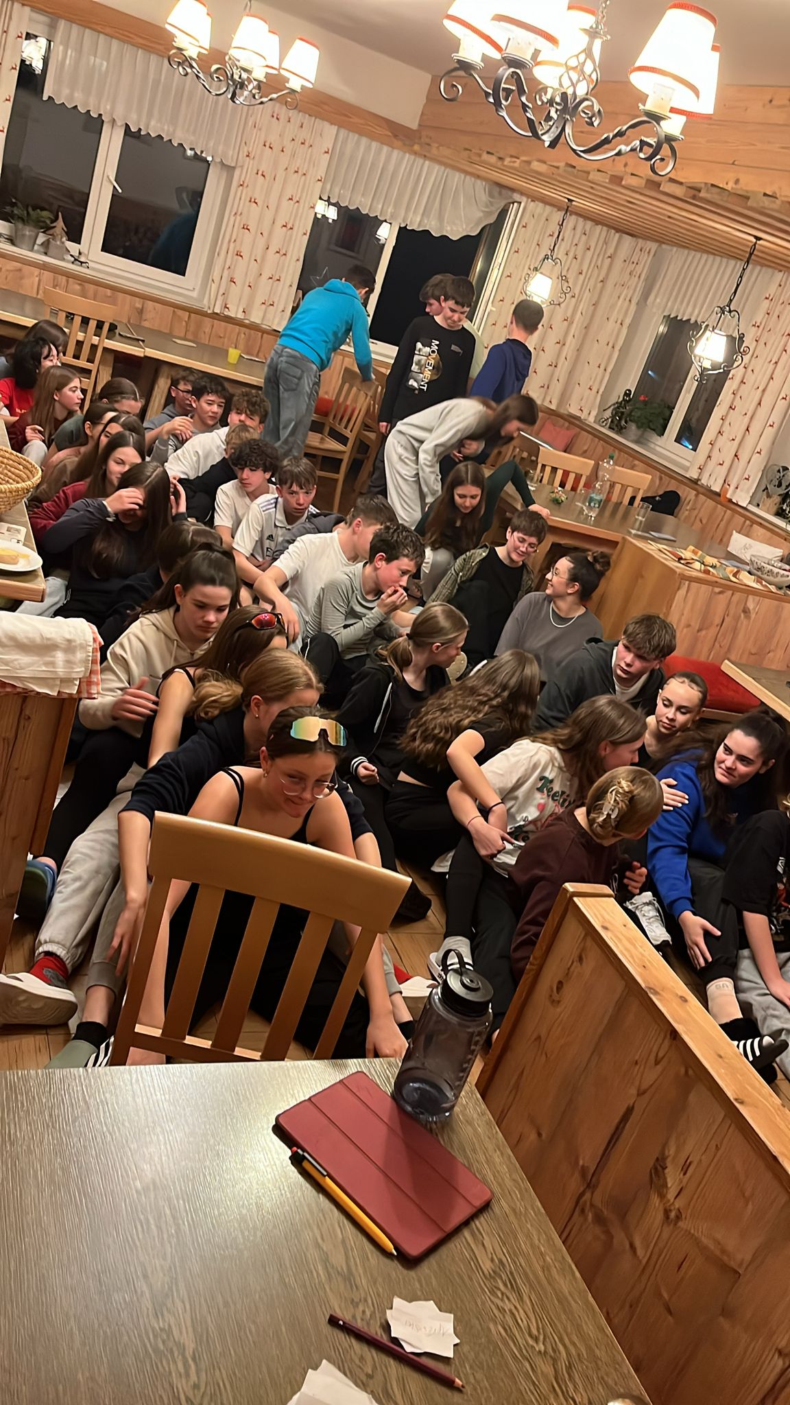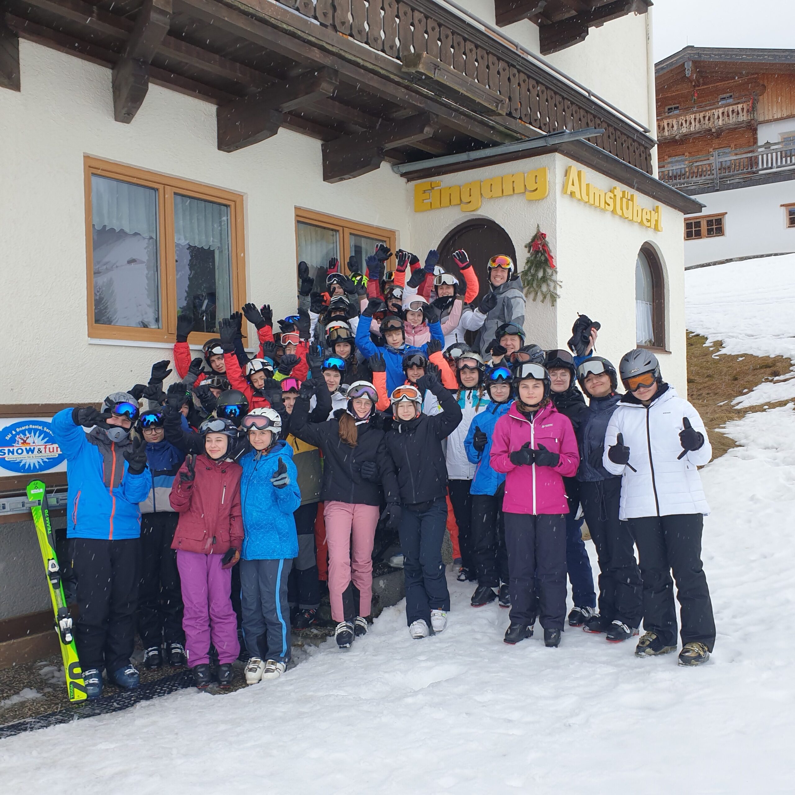 Vom 28. Januar bis 2. Februar 2024 verbrachten die Schülerinnen und Schüler der 8. Klassen zusammen mit Frau Böhner (Leitung), Herrn Boden, Herrn Haslinger und Frau Tuscher eine ereignisreiche und spannende (!) Woche im Skilager auf der Hintermais Alm in Saalbach-Hinterglemm. Bei überwiegend sonnigem Wetter genossen die Skifahrer die gut präparierten Pisten und erweiterten ihre Fähigkeiten. Auf der Hütte wurde das Gemeinschaftsgefühl beim Spieleabend und auch beim von den Schülern sehr schön gestalteten Bunten Abend kräftig gestärkt.